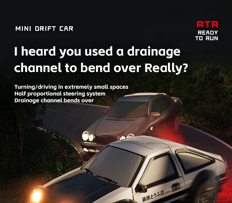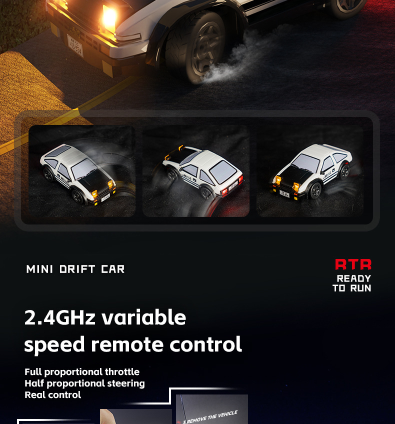 JDM-Style Micro Drifter | 1:64 Scale Desktop RC Car with Proportional Control | 2.4G 4WD Mini Racing Toy